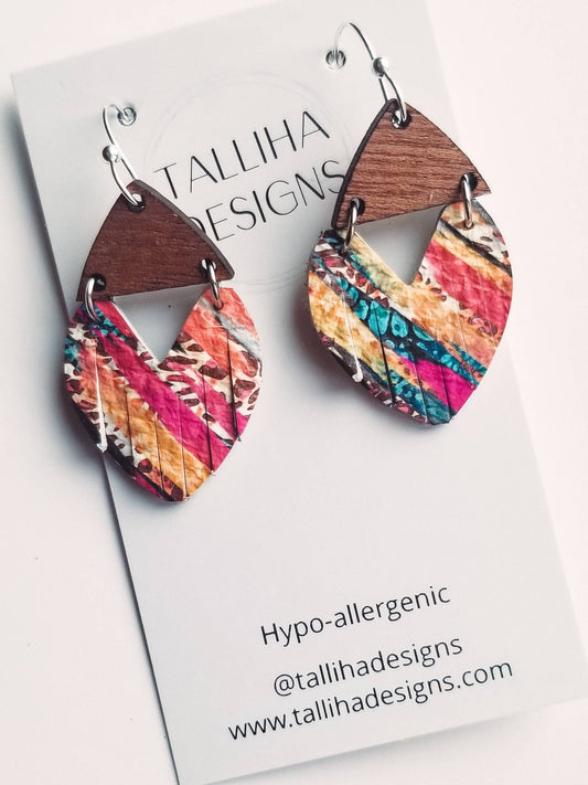 Colorful Leopard Striped Stella Genuine Leather Earrings: Large (~2")